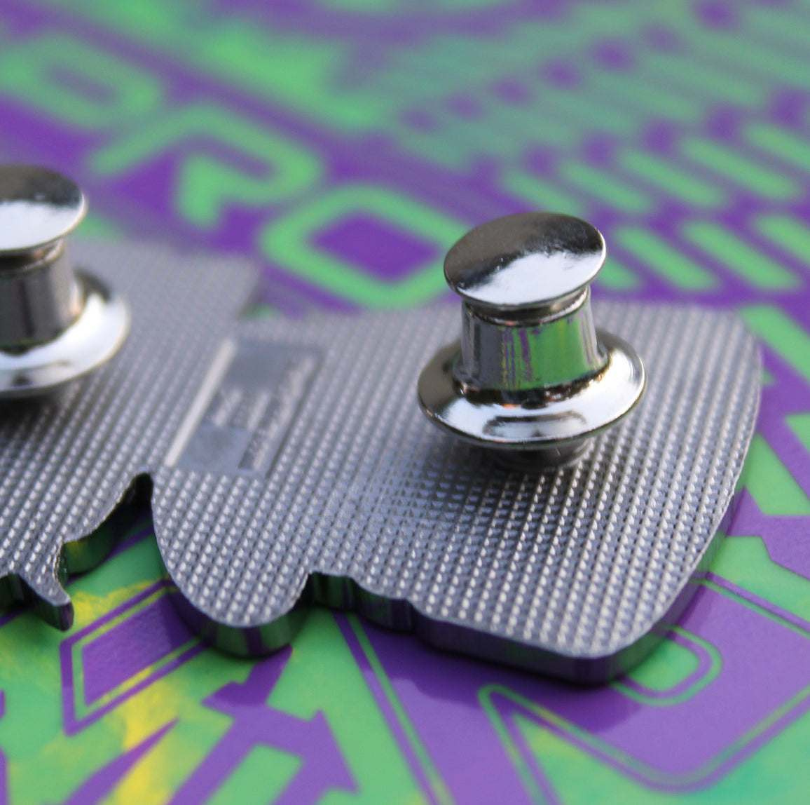 Get a set of locking metal backers to keep your pins safe and secure on your bag! These click into place on the metal pin post and will not fall off or come loose. To release the backer, hold the smaller end with one hand and the larger bottom with the other and pull on the small end. This will release the backer from the pin post.