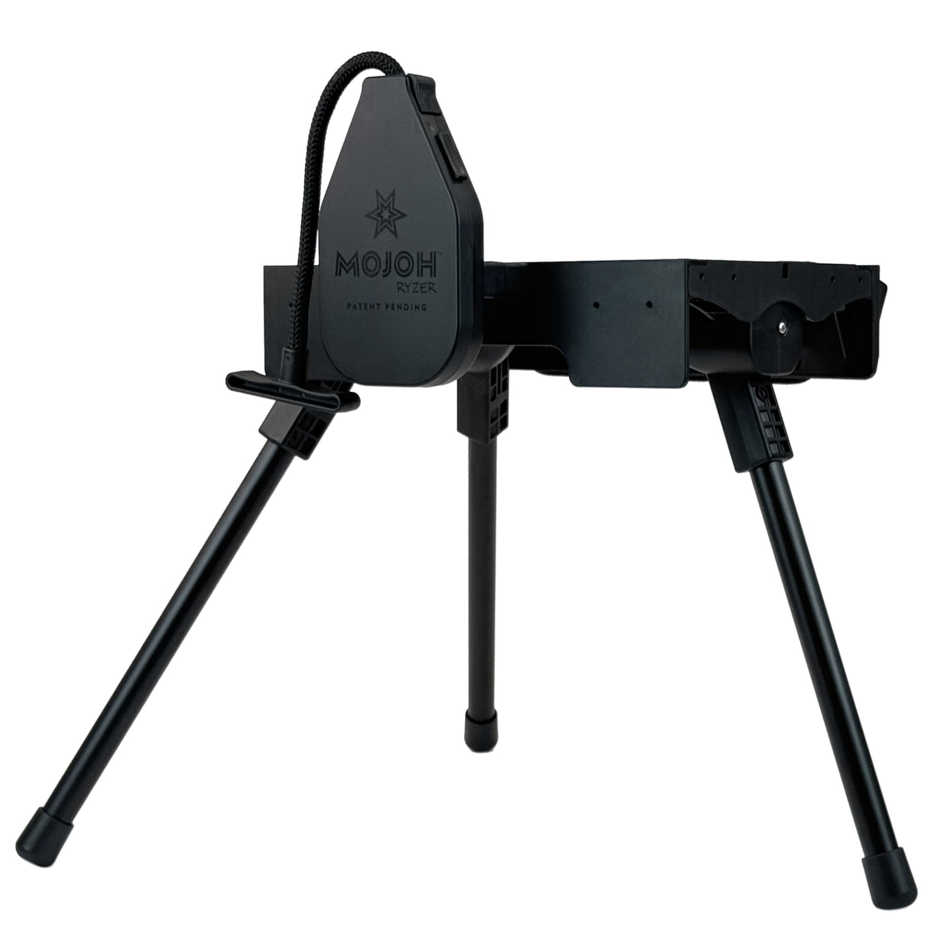 The Mojoh Ryzer isn't just an accessory; it's a game-changer. Whether you’re grinding through a tournament or just enjoying a casual round, this LIGHTWEIGHT stand instantly elevates your disc golf bag, keeping it CLEAN, DRY, and within ARM'S REACH. No more MUDDY bag, no more BACKACHES from constant bending—just a simple PULL of the handle extends the legs and when you're ready to move, the Ryzer’s legs AUTOMATICALLY RETRACT. Despite its sturdy design, you’ll barely notice it’s there, thanks to its lightweight construction. Compatible with most backpack-style disc golf bags, the Mojoh Ryzer’s clever tripod design offers stability on flat ground, hills, and even uneven terrain.